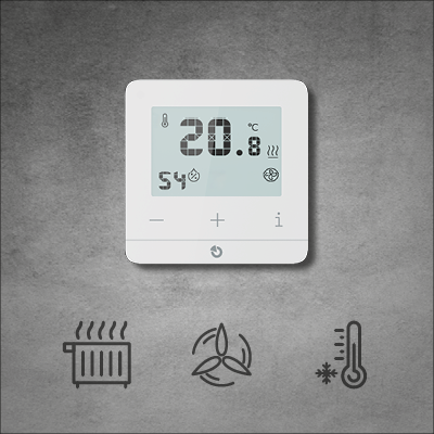 A szezonális fűtési és hűtési üzemmódoknak, valamint a párhuzamos szellőztetési üzemmódnak köszönhetően a termosztát a rendszer legfeljebb 3 különböző PG-kimenetét képes önállóan vezérelni. Nemcsak padlófűtéshez, törülközőmelegítőhöz vagy radiátorokhoz csatlakoztatható, hanem a hálószobai légkondicionálóhoz vagy a fürdőszobai szellőzőrendszerhez is.