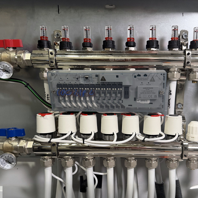 | Legfeljebb 12 termoelektromos fej önálló vezérléséhez melegvíz-padlófűtés, hőforrások és keringető szivattyúk esetében, a rendszer termosztátjainak utasításai alapján. Egyszerű telepítés közvetlenül a padlóelosztóba. | |